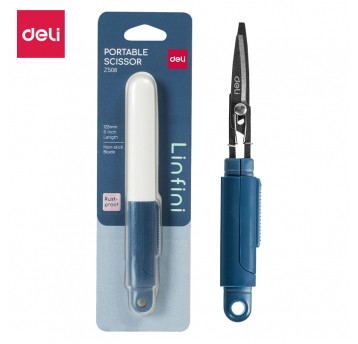 Kompaktowe nożyczki Deli EZ508 w bezpiecznym etui, niebieskie