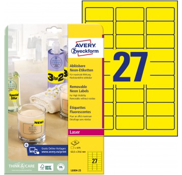 Etykiety do oznaczania Avery Zweckform 63,5 x 29,6 mm neonowe żółte