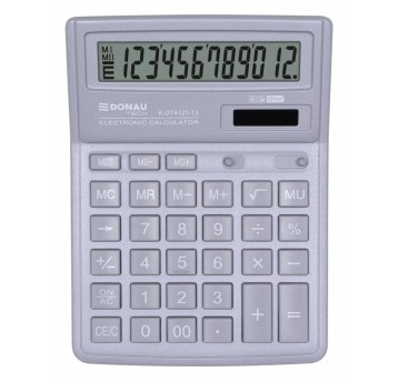 Kalkulator biurowy Donau Tech, 12-cyfr. wyświetlacz, wym. 190x143x40 mm, szary jasny