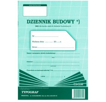 Dziennik budowy DB3 dla bardzo małych obiektów budowlanych Typograf A4