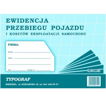 Ewidencja przebiegu pojazdu i kosztów eksploatacji samochodu Typograf A5