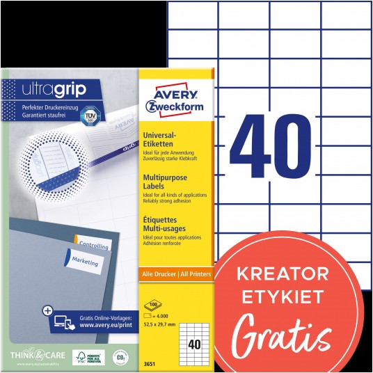 Etykiety uniwersalne Avery Zweckform Ultragrip 52,5 x 29,7 mm