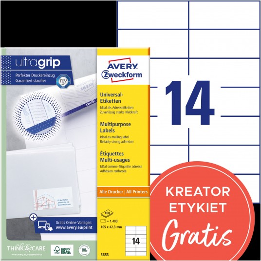 Etykiety uniwersalne Avery Zweckform Ultragrip 105 x 42,3 mm