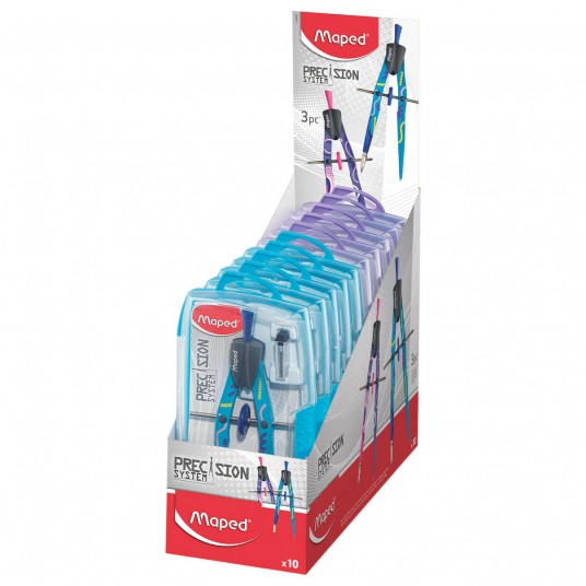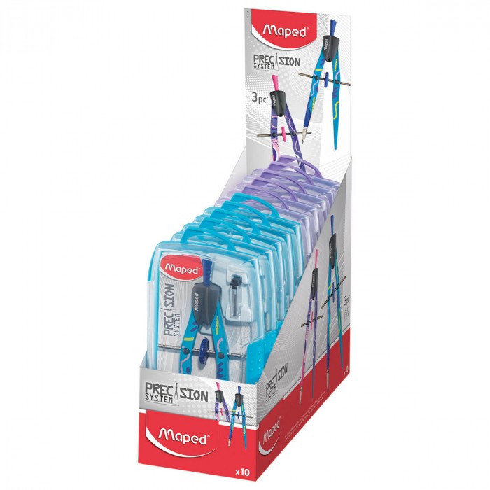 - cyrkiel zerowy z końcówką grafitową i uniwersalną oraz zapasowymi grafitami - maksymalny promień 300 mm, długość cyrkla 165 mm - dwie wersje kolorystyczne: niebieska i fioletowo-różowa - pudełko odporne na pęknięcia