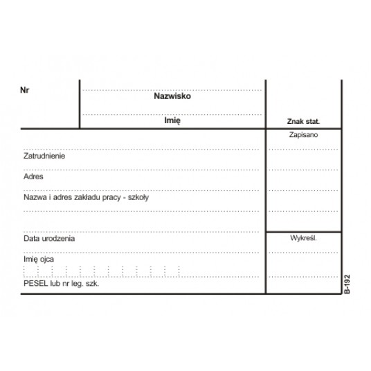 Karta zapisu - Zobowiązanie B192 (karton) Typograf A7