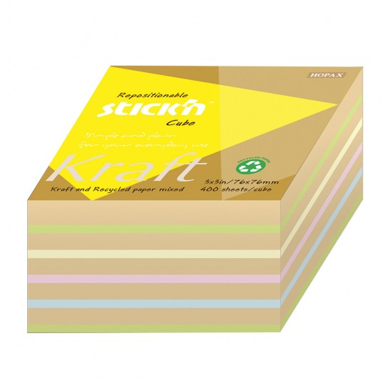 - notes kostka Kraft zawiera karteczki z papieru niebielonego przełożone kolorowymi kartkami z papieru z recyklingu - 400 karteczek o wymiarach 76 x 76 mm - idealny do zapisywania i zostawiania ważnych wiadomości