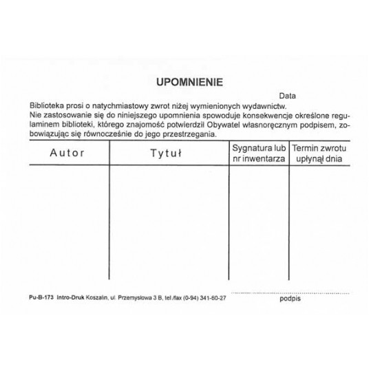 Upomnienie B173 (karton) Typograf A6