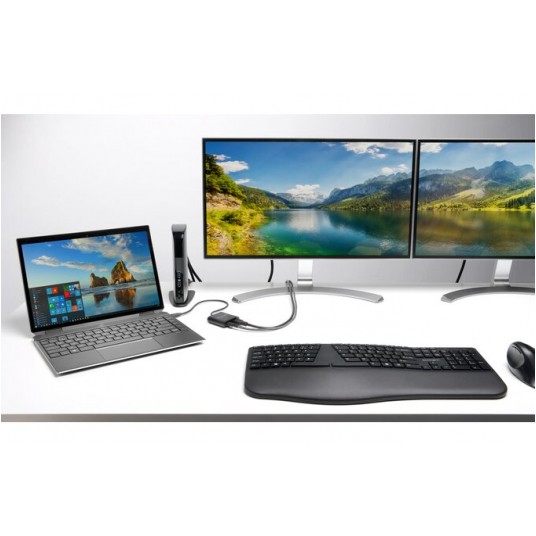 Podzielona i wyprofilowana pod odpowiednim kątem powierzchnia klawiatury z regulowanym odchyleniem umożliwia ułożenie rąk, przedramienia i nadgarstków w naturalnej pozycji, zapewniając im komfort.