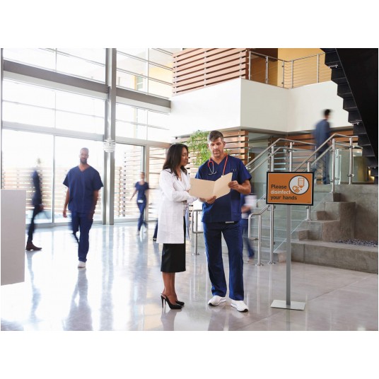 - dwustronny stojak podłogowy nadaje się zarówno do prezentacji informacji, jak również jako system oszyldowania wskazujący np. drogę