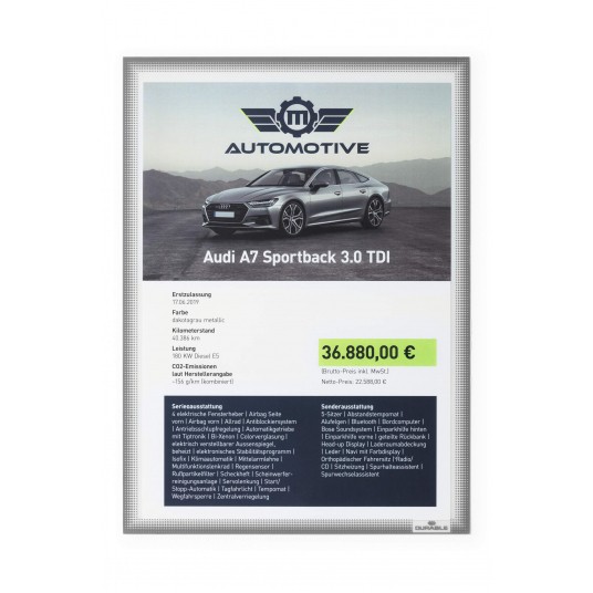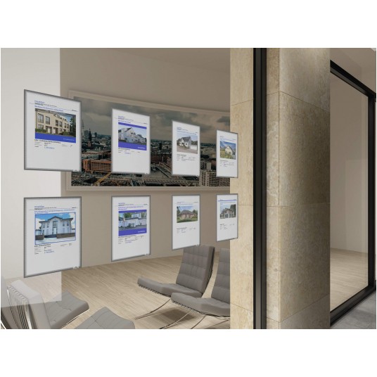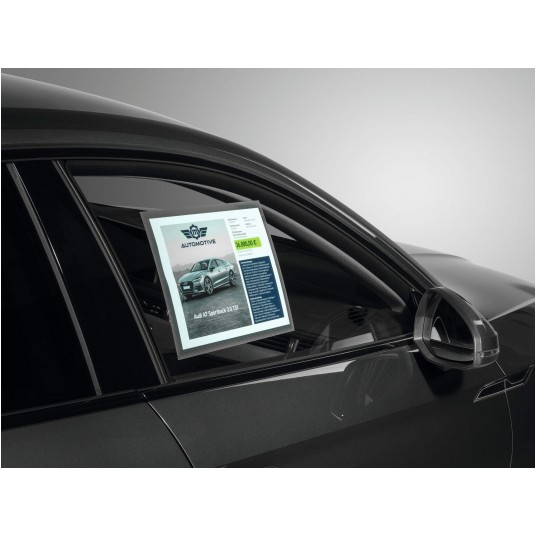 - przytwierdzenie informacji do wewnętrznych szklanych powierzchni, w tym również zakrzywionych, takich jak np. szyby samochodowe - odporna na ciepło do ok. 70°C; odporna na promieniowanie UV do 2 lat - można ją usunąć bez pozostawienia śladów - do wielokrotnego użytku - łatwa wymiana informacji dzięki szczelinie na tylnej ścianie - może być używana w formacie pionowym i poziomym