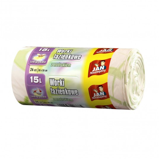 Ekskluzywne worki na śmieci wykonane z folii w kolorze kremowym, z pastelowym nadrukiem - pasują do każdej łazienki. Posiadają sprawdzony system zawiązywania worków typu Easy Pack 15l (38 cm x 50 cm, 26 sztuk na rolce)