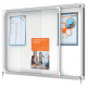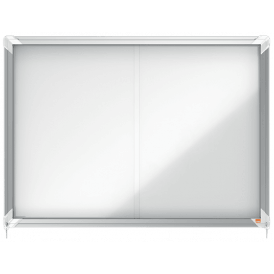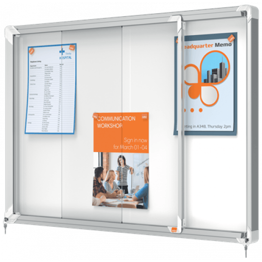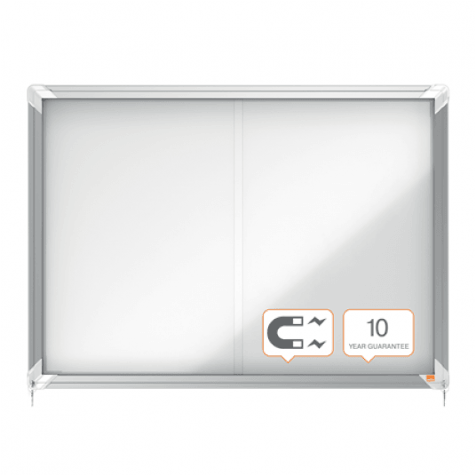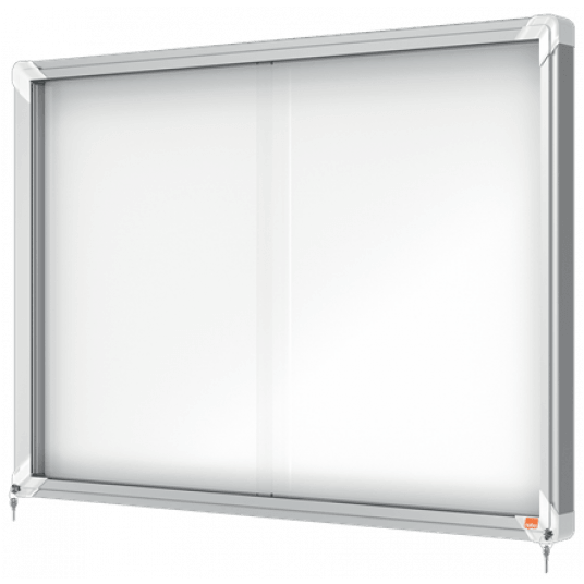 Zamykana gablota informacyjna z białą magnetyczną powierzchnią i przesuwanymi drzwiczkami z wytrzymałego, bezpiecznego szkła o grubości 4 mm. Zamieszczone w niej informacje będą bezpieczne i suche bez względu na panujące warunki atmosferyczne. Odpowiednia dla dokumentów w formatach będących wielokrotnością arkuszy A4.