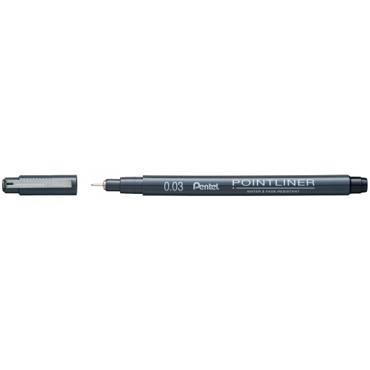 Precyzyjny cienkopis z czarnym tuszem pigmentowym odpornym na wodę oraz blaknięcie - ISO 14145-2:1998. - grubość końcówki: 0,03 mm - idealny do rysowania, pisania, szkicowania, Zentangle - bardzo wytrzymała końcówka, długa linia pisania - może być używany z akwarelami i innymi tuszami wodnymi.
