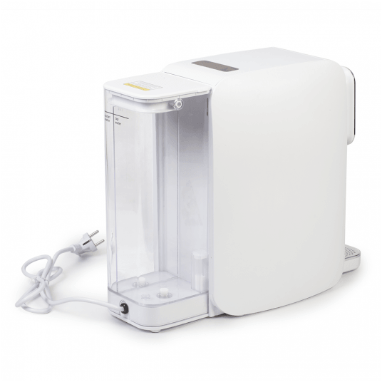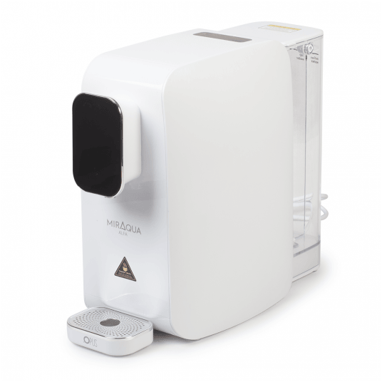 Miraqua ALFA to prosty i intuicyjny w obsłudze dystrybutor wody, który filtruje, mineralizuje i grzeje wodę – i to wszystko w zaledwie 3 sekundy! Dystrybutor oferuje aż 6 różnych temperatur podawanej wody, co pozwoli Ci błyskawicznie przygotować odpowiedni napój i cieszyć się jego smakiem, aromatem oraz właściwościami zdrowotnymi. Miraqua ALFA to także elegancki dodatek do każdego wnętrza: domu, biura, sali konferencyjnej czy poczekalni – dzięki własnemu pojemnikowi nie wymaga podłączenia do sieci wodociągowej.