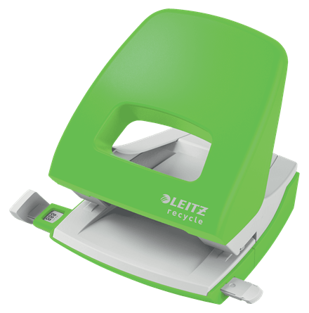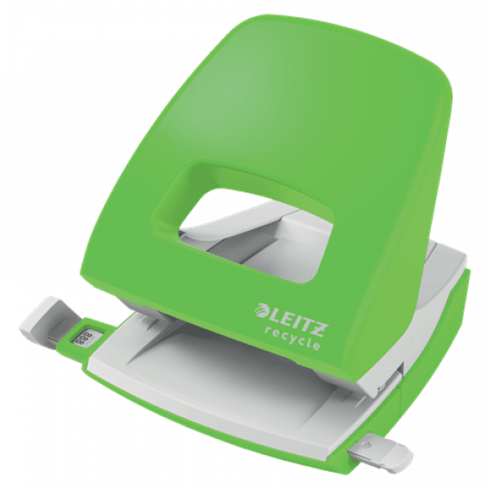 Dziurkacz Leitz NeXXt Recycle to efektowny, wysokiej jakości dziurkacz wykonany z plastiku pochodzącego z recyklingu przeznaczony do codziennego użytku.