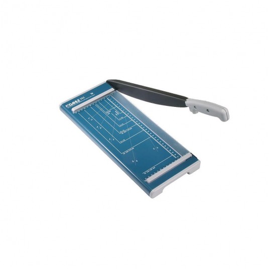 Kompaktowa gilotyna do użytku hobbystycznego. - solidna metalowa podstawa z zaokrąglonymi rogami i antypoślizgowymi nogami zapewnia stabliność - praktyczne uchwyty ułtawiają przenoszenie gilotyny - pomocne linie z podziałką w mm wzdłuż linii cięcia ułatwiają wyrównanie materiału - ergonomiczny uchwyt ostrza - górne ostrze ze stali hartowanej - dolne ostrze ze stali - ręczny docisk materiału gwarantuje położenie materiału podczas cięcia - dwie listwy ze skalą w mm do precyzyjnego cięcia 90° - długość cięcia: 320 mm - maksymalny cięty rozmiar papieru DIN: A4 - maksymalna cięta jednorazowo ilość kartek (80g/m2): 8 - maksymalna wysokość ciętego pliku: 0,8 mm - wymiary zewnętrzne blatu: 420x175 mm.