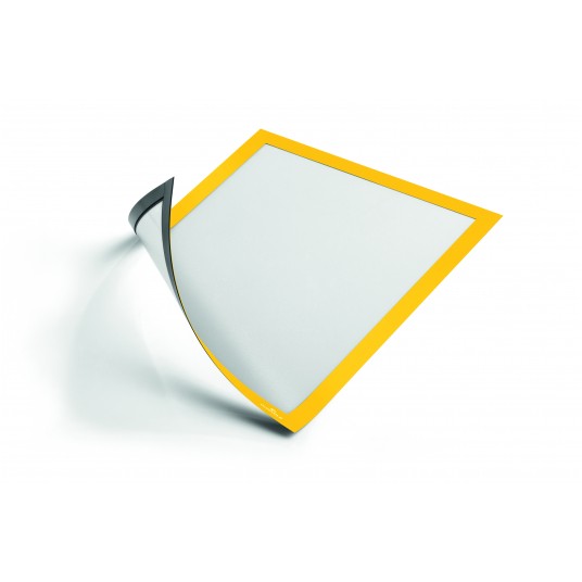 Ramka informacyjna z magnesem do wkładów w kolorze żółtym - kolorowa ramka informacyjna z magnetycznymi paskami mocującymi na informację w rozmiarze A4 - do zastosowania w pionie lub poziomie - prosta i szybka wymiana dokumentów przez odchylenie koszulki - transparentna, twarda folia chroni dokumenty - magnez może być przymocowany do metalowych powierzchni