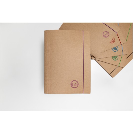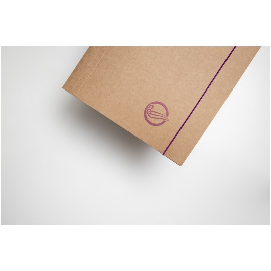 Teczka z gumką wykonana z ekologicznej jasno brązowej tektury typu Kraft podlegającej 100% recyklingowi. - dostępna w gramaturze 300g - wyposażona w gumkę w kolorze druku - posiada trzy wewnętrzne klapki zabezpieczające dokumenty przed wypadnięciem - format A4+ - okładka z motywem graficznym: powietrze
