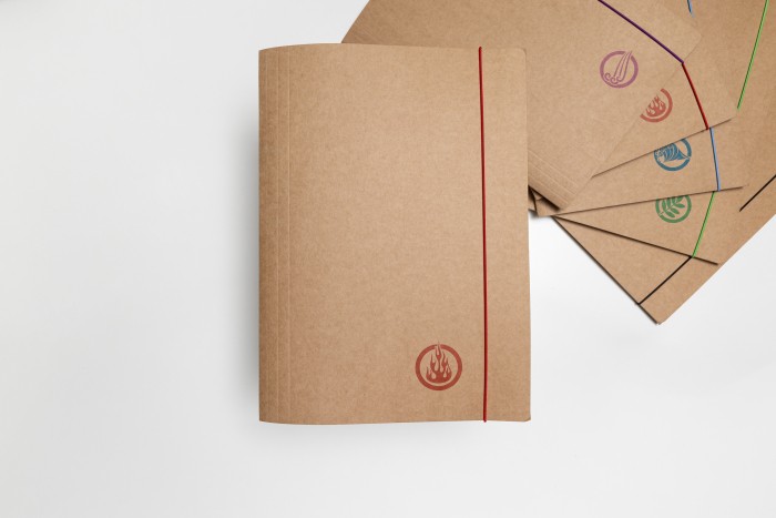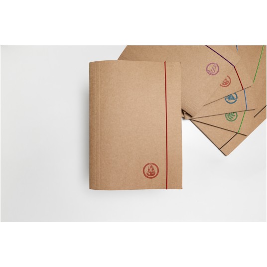 Teczka z gumką wykonana z ekologicznej jasno brązowej tektury typu Kraft podlegającej 100% recyklingowi. - dostępna w gramaturze 300g - wyposażona w gumkę w kolorze druku - posiada trzy wewnętrzne klapki zabezpieczające dokumenty przed wypadnięciem - format A4+ - okładka z motywem graficznym: ogień