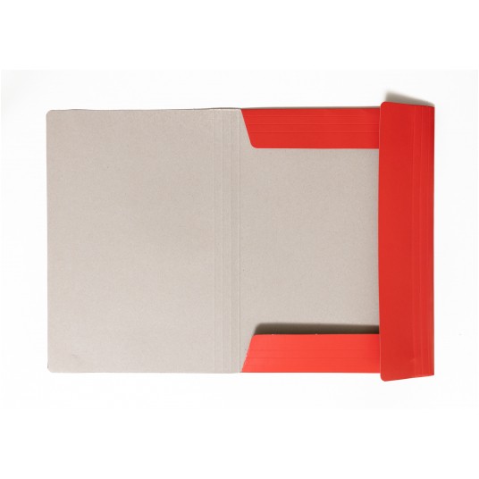 Teczka z gumką została wykonana z grubego makulaturowego kartonu 300 g/m2, jednostronnie barwionego i lakierowanego. - wyposażona w gumkę wzdłuż długiego boku - posiada trzy wewnętrzne klapki zabezpieczające dokumenty przed wypadnięciem - kolor: czerwony - format A4+. - pakowane po 25 szt.