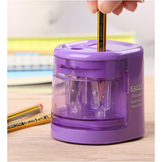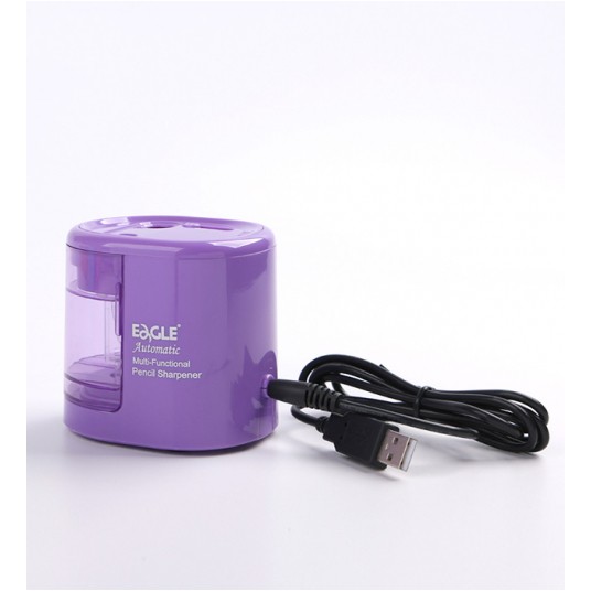 Dwuotworowa temperówka do ołówków o średnicy 6 – 8 i 9 – 12 mm. - bezpieczny dla dzieci przełącznik rozmiaru ołówka - trwały mechanizm z dwoma wysokiej jakości ostrzami ze stali węglowej - wymienne ostrza - na baterie AA (4 szt., nie dołączono) oraz kabel USB (w zestawie) - 2 dodatkowe ostrza gratis - stabilna podstawa - 3 lata gwarancji - kolor: fioletowy