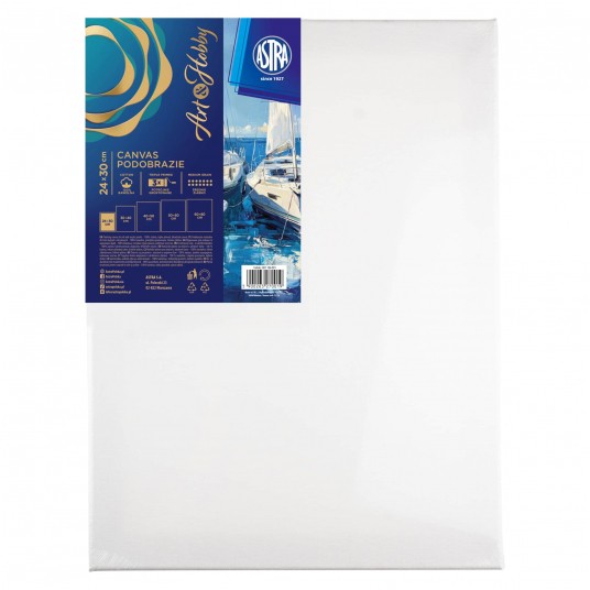 Podobrazie malarskie 24×30 cm dedykowane do malowania olejnego i akrylowego. Zostało wykonane z bawełny o gramaturze 280 g powleczonej gruntem uniwersalnym. Lekkie ramy zostały wykonane z drewna jodły. W zestawie znajduje się komplet klinów rozporowych.