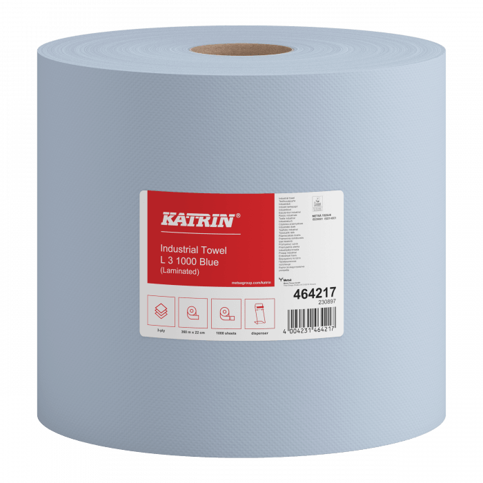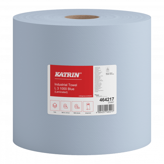 Ręcznik papierowy do rąk w roli, dobrej jakości Mocny, dobrze suszący 3-warstwowy, niebieski Szczególnie odpowiedni dla gastronomii, ponieważ niebieski kolor jest dobrze widoczny Dopuszczony do bezpośredniego kontaktu z żywnością