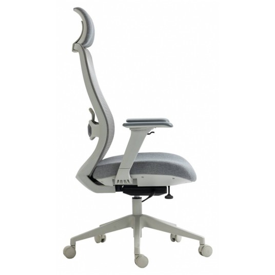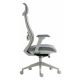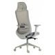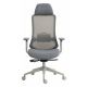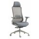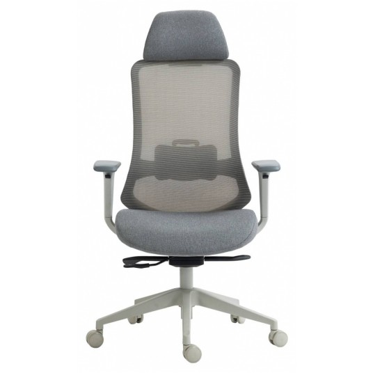 ergonomiczny, obrotowy fotel biurowy z wysokim oparciem z siatki, tapicerowanymi tkaniną siedziskiem i zagłówkiem