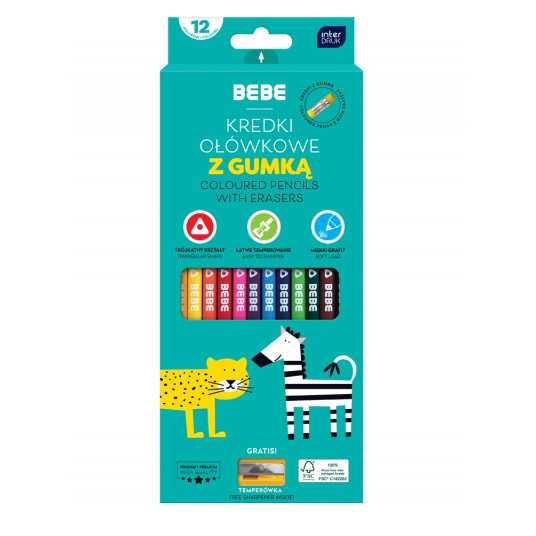 - 12 intensywnych kolorów - trójkątny profil zapewnia wygodny uchwyt, a matowe wykończenie dodaje stylu - łatwe temperowanie, supermiękkie i odporne na łamanie, do zestawu dołączona jest praktyczna temperówka - złota i srebrna kredka w zestawie, różne wersje kolorystyczne opakowania (wysyłane losowo) - produkt z oświadczeniem FSC - dbamy o środowisko!