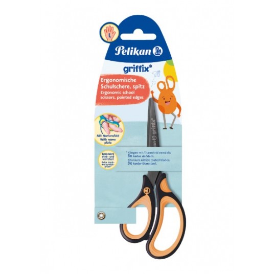 Nożyczki ergonomiczne Pelikan szpiczaste dla leworęcznych czarny neon