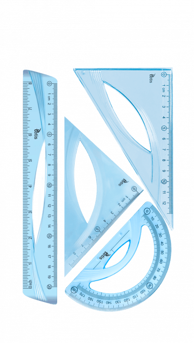 - komplet zawiera: 2 ekierki 9 cm i 13 cm, linijkę 20 cm, kątomierz - opakowanie: blister