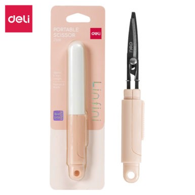 Kompaktowe nożyczki w bezpiecznym etui Deli Linfini EZ508 różowe długość 125 mm ostrza ze stali nierdzewnej zapobiegające przyklejaniu się materiału ergonomiczne, symetryczne uchwyty z plastiku ABS zaokrąglone końcówki dla bezpieczeństwa antykorozyjne – odporne na rdzę poręczny rozmiar – łatwe do przenoszenia zapakowane w blister idealne do prac biurowych, szkolnych i domowych