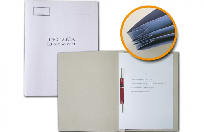 - wykonana z makulaturowej tektury GD, bezkwasowa, pH 7,5-9,5, rezerwa alkaliczna powyżej 0,4 mol/kg. - gramatura kartonu 300 g/m2 - rozszerzany harmonijkowy grzbiet - wewnątrz pięć przekładek A, B, C, D, E o gramaturze 170 g/m2 - na zewnątrz miejsce opisowe na personalia