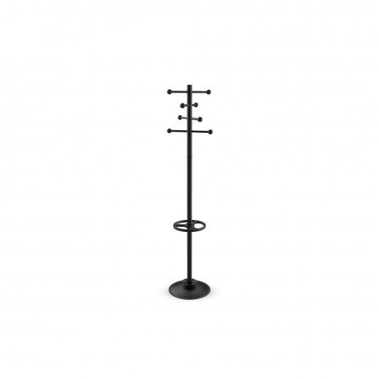 Wieszak podłogowy MAULsaphir w kolorze czarnym. Doskonałe połączenie wysokiej jakości, funkcjonalności i eleganckiego designu. Ten nowoczesny, minimalistyczny produkt doskonale wpasuje się w każde wnętrze. Solidna stalowa podstawa zapewnia stabilność i trwałość, gwarantując bezpieczeństwo i wygodę użytkowania. Wieszak wyposażony jest w 8 wytrzymałych, rozsuniętych drążków na ubrania, dla optymalnej przestrzeni na różne elementy garderoby. Dodatkowo posiada stojak na parasole z tacką ociekową, chroniący podłogę przed wilgocią. Wykonany z wysokiej jakości metalu i tworzywa ABS - zapewnia wyjątkową trwałość i odporność na codzienne użytkowanie. Doskonale sprawdzi się w biurach, korytarzach, salach konferencyjnych oraz innych pomieszczeniach. Łatwy montaż – wszystkie niezbędne narzędzia są dołączone, a sam proces składania zajmuje zaledwie kilka minut. Gwarancja 2 lata.