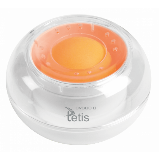 Zwilżacz do palców. Zwilżanie za pomocą piłeczki i wody lub innych środków nawilżających. Obudowa wykonana z tworzywa sztucznego. Posiada przezroczystą pokrywę i antypoślizgowe podkładki. Wymiary: średnica 79 mm, wysokość 42,5 mm. Opakowanie: blister