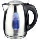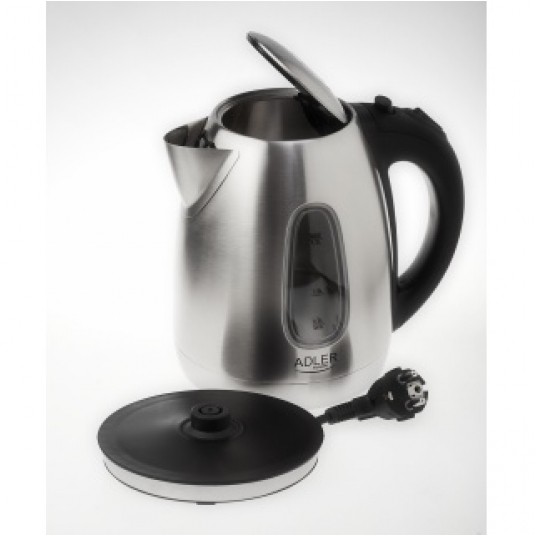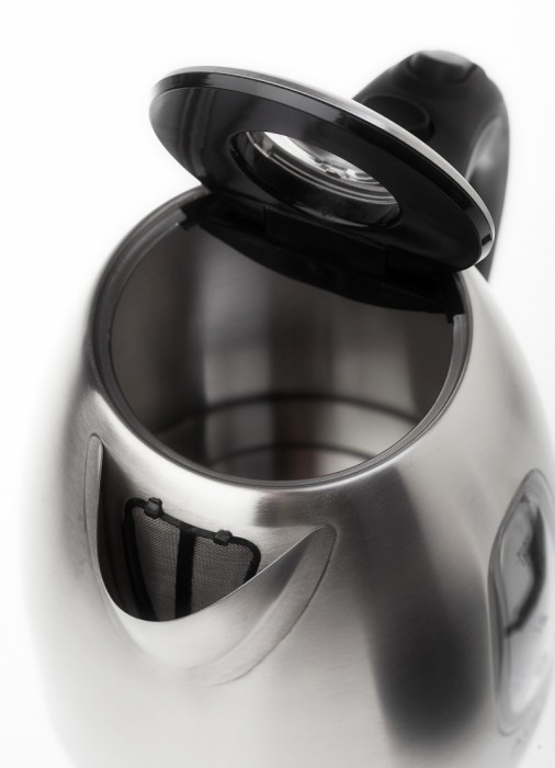 Duży, elektryczny czajnik rodzinny, moc 2000W, pojemność 1,7 l, obudowa ze stali szlachetnej, duży, czytelny wodowskaz, filtr zatrzymujący osady wapnia, automatyczne wyłączanie, zabezpieczenie przed włączeniem pustego czajnika, obrotowa podstawa 360°, lampka kontrolna LED, podświetlany wskaźnik poziomu wody, płaskie dno (grzałka w płycie dna), rok gwarancji