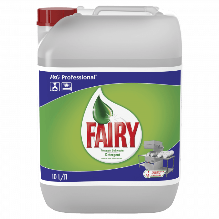 Fairy Professional to skoncentrowany detergent w płynie, przeznaczony do zmywarek komercyjnych o krótkim cyklu pracy (1–5 min.). Zawiera specjalną formułę zapewniającą doskonałe mycie oraz zapobiegającą osadzaniu się kamienia.