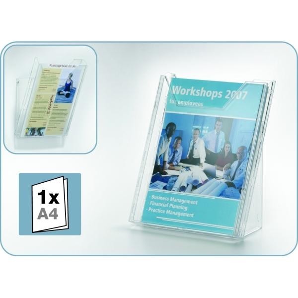 - półka na ulotki A4 - budowa nóżek umożliwia stosowanie półki w wersji na biurko lub na ścianę - istnieje możliwość rozbudowy zestawu o kolejne półki poprzez moduł rozszerzający (L1372)