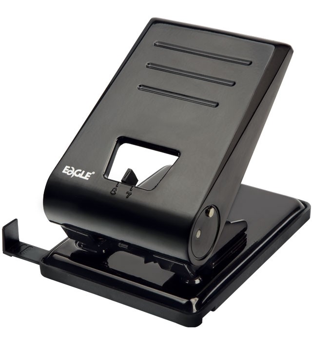 – metalowe ramię – pojemnik na odpady z tworzywa sztucznego nierysującego podłoża – wskaźnik środka strony – listwa formatowa – blokada ramienia ułatwia przechowywanie – ogranicza wysokość do 70 mm – regulowany rozstaw otworów: 70/80 mm – dziurkuje do 40 kartek – średnica dziurki 6 mm – gwarancja 3 lata