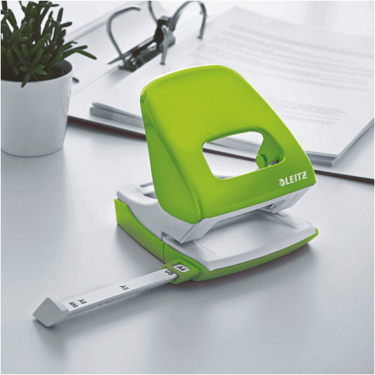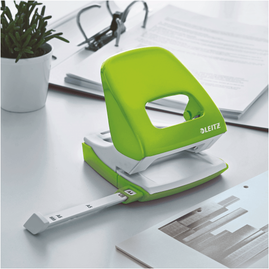 Dziurkacz Leitz WOW to mocny metalowy dziurkacz do codziennego użytku. - dziurkuje do 30 kartek (papier 80 gsm) - łatwo dopasowujący się wygodny uchwyt i wytrzymałe ostrza zmniejszają wysiłek podczas dziurkowania - wyraźne oznaczenia formatu i wytrzymała prowadnica zapewniają doskonałe wyrównanie papieru - łatwy do opróżniania pojemnik na ścinki zamontowany na zawiasach - 10-letnia gwarancja i certyfikat bezpieczeństwa GS - kolor: zielony metaliczny.