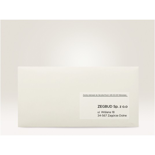 • Przezroczyste, poliestrowe etykiety, które „znikają” po naklejeniu na białą, kolorową lub fakturowaną powierzchnię. Kolorowe koperty wyglądają jak zadrukowane.