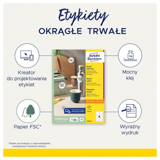 • Darmowe i ławe w użyciu szablony oraz oprogramowanie do projektowania i wydruku etykiet jest dostępne na stronie: www.avery-zweckform.pl