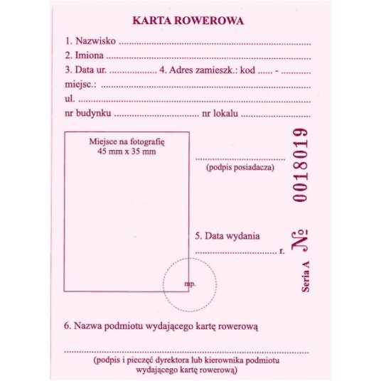 Karta rowerowa (numerowana) Typograf A7
