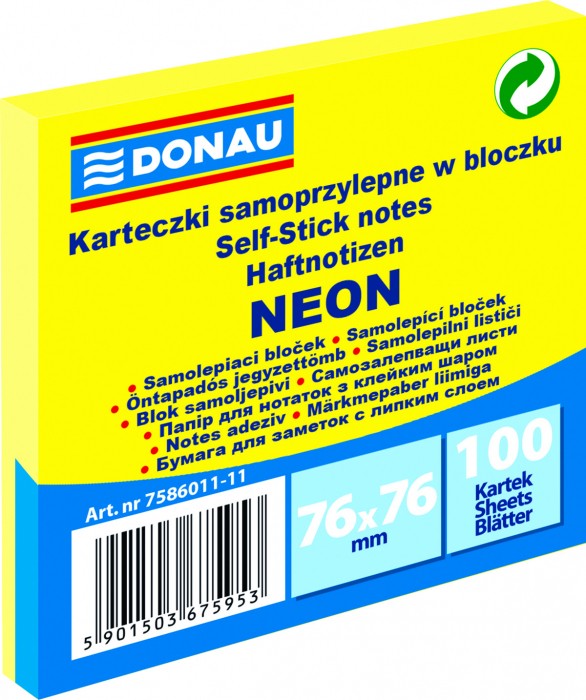 Karteczki samoprzylepne Donau 76 x 76 mm żółte neonowe