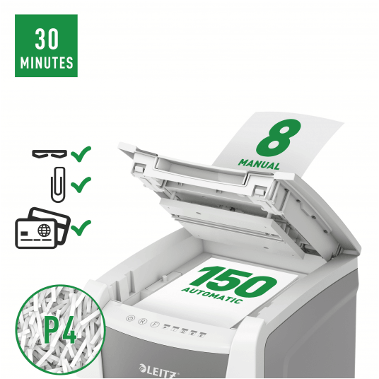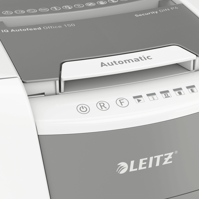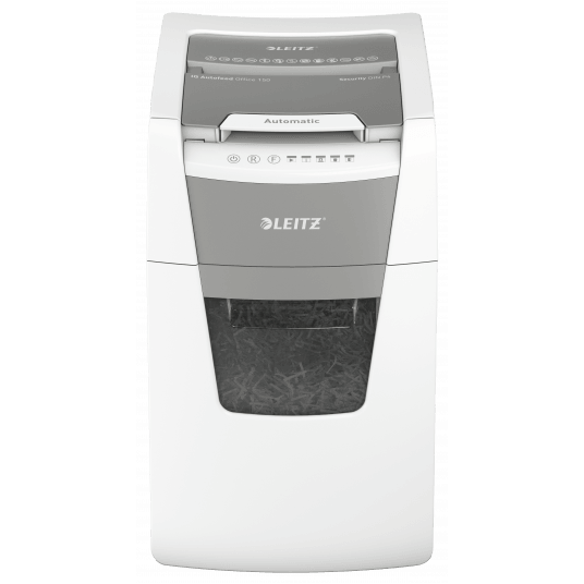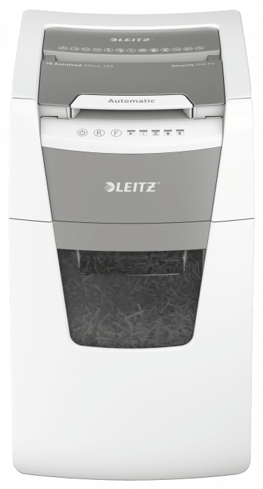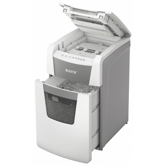 W pełni automatyczna niszczarka do papieru firmy Leitz z unikalną funkcją samooczyszczania.