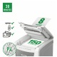 - może pracować nieprzerwanie przez 30 minut, niszcząc wszystkie dokumenty umieszczone w komorze podajnika w trakcie jednego cyklu; tryb uśpienia ECO aktywuje się po 3 minutach nieużywania