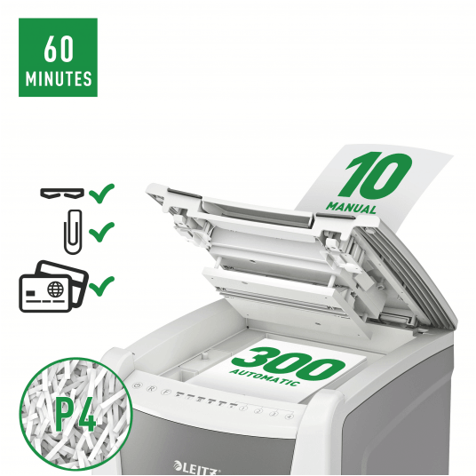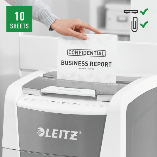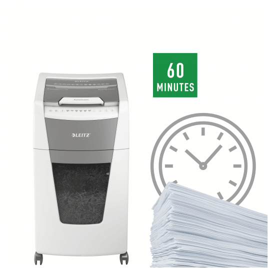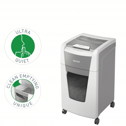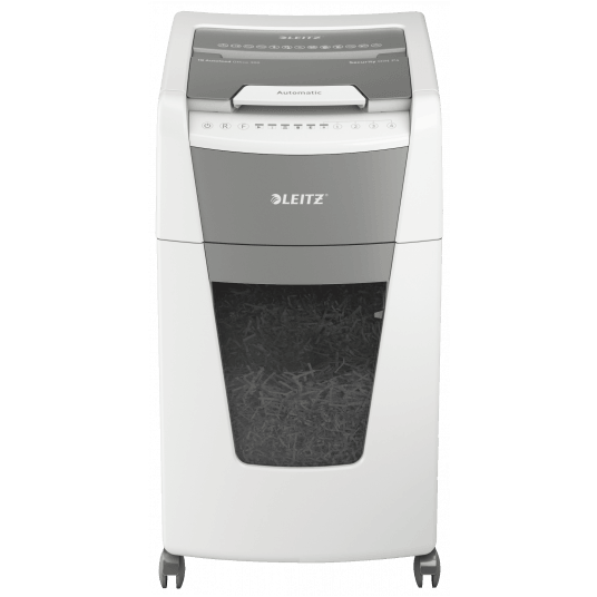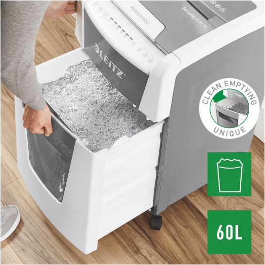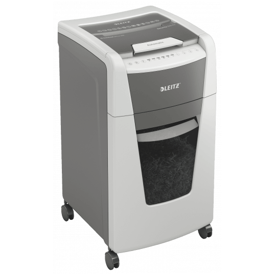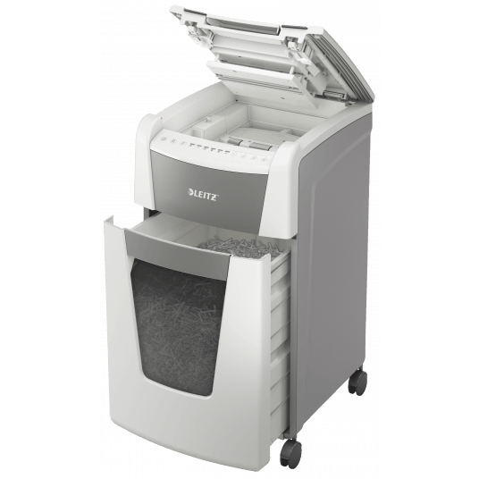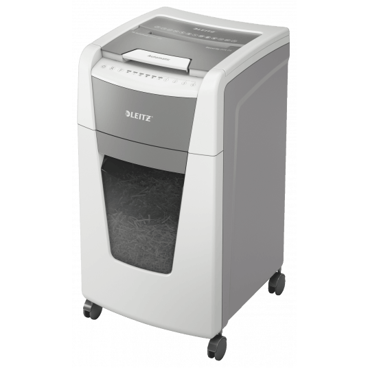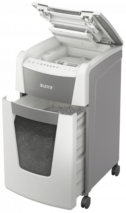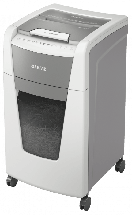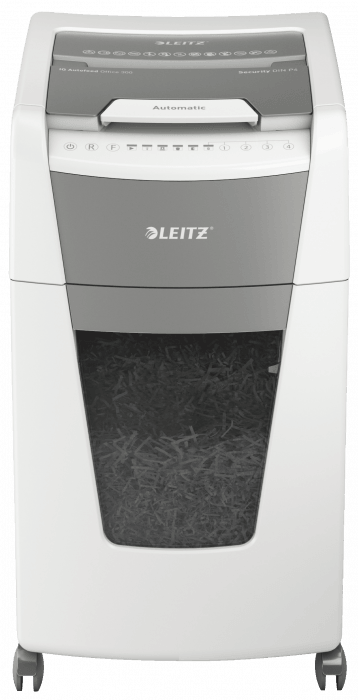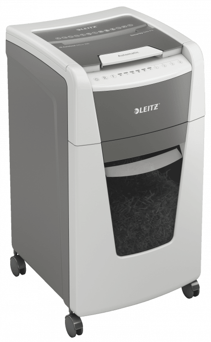 W pełni automatyczna niszczarka do papieru firmy Leitz z unikalną funkcją samooczyszczania.