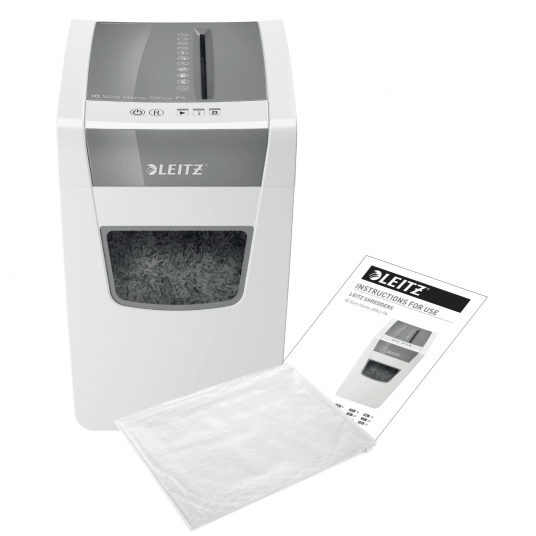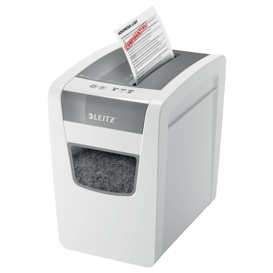 - niezwykle cicha praca urządzenia - gwarantuje niezakłócony spokój w miejscu pracy (pod warunkiem regularnego stosowania arkuszy Leitz do oliwienia ostrzy)