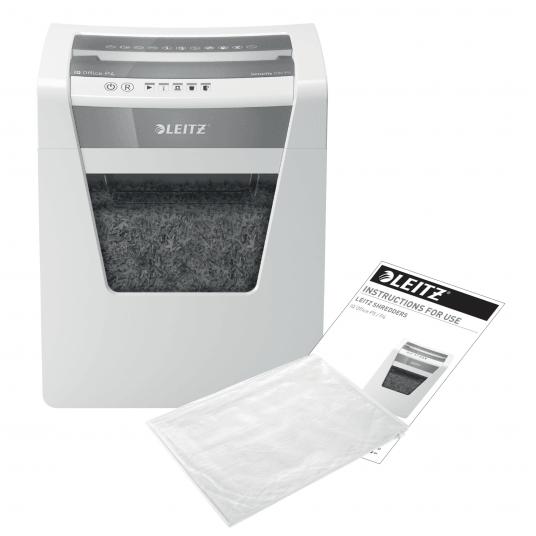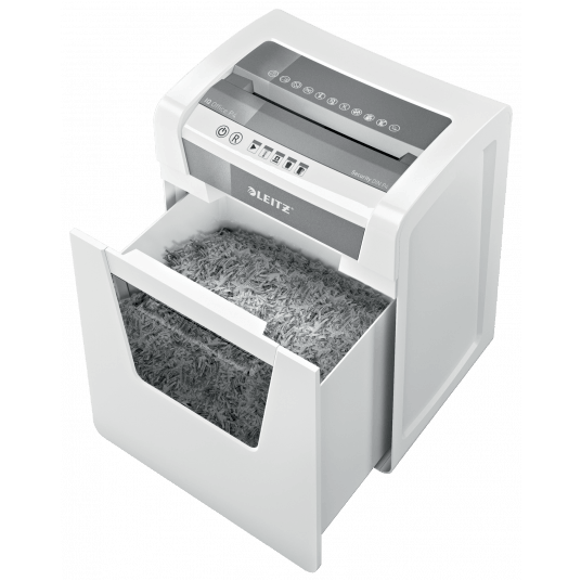 - niezwykle cicha praca urządzenia - gwarantuje niezakłócony spokój w miejscu pracy (pod warunkiem regularnego stosowania arkuszy Leitz do oliwienia ostrzy)