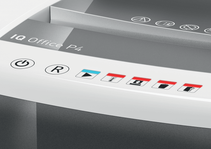 - technologia zapobiegania zacięciom zapewnia bezproblemową pracę niszczarki - urządzenie zatrzymuje się automatycznie i cofa papier, jeżeli w podajniku umieszczonych zostało zbyt wiele arkuszy